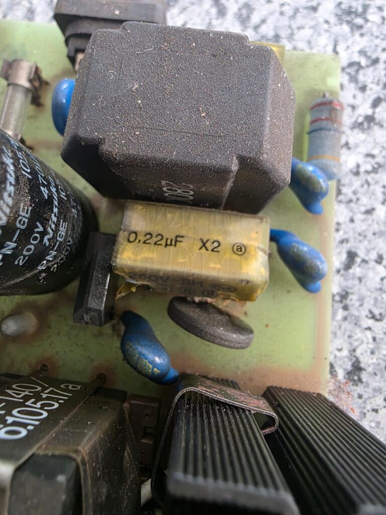Bei meiner Ascom SE 140 SE 160 6- Fachladestation ist der Gelbe X2-Kondensator: 250V~ SH 0.22µF → Netzfilter abgeraucht!